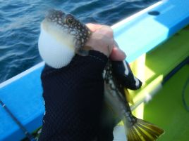 船は10分ほど走ってポイントに到着する。八景沖のやや北寄りのポイントでマダイやイシダイなども混ざることがあるポイントだと思われる。3メートル3本針にオキアミを付けるアミ五目用の仕掛けで釣り開始。タナをハリス分にするために底から1.5メートルで一振り、2メートルでもう一振り、2.5メートルでもう一振りしてから3メートルにタナを合わせて待つ。アジの活性が高ければすぐに魚信があるはずなのだが…何もない。たまに竿先をフルルと揺するような魚信は出るが、小アジではなく…オキアミの齧られ具合から想像するにクサフグの魚信だと思われる。