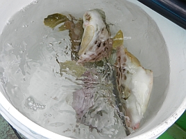 サイズも27センチまで伸ばし、今シーズン初の20匹超えは確実で、どこまで数を伸ばせるかが気になりだす。午後1時の時点で30匹いっちゃうんじゃないと思い始める。この時点で23匹。沖上がりは3時くらいなので、時速4匹ペースなら30匹を超える。でも…干潮(午後1時41分)に向けて潮が止まると、大幅にペースダウン。サバフグの猛攻に遭い、カワハギらしき魚信も乗せきれなかったり、巻き上げ中にバレたりが多発し始める。抜き上げミスも2回ほどあり、後半2時間で釣ったのはわずか4匹。結局、27匹で沖上がりの時間に。TKB43ルールなら27センチ、25センチ、23センチで合計75センチと型にも恵まれた。