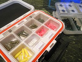 マグタンクを買ってウキ用小物を整理したくなったのはそんな理由から。帰ってからシャワーをかければ臭いや汚れが気にならなくなるはず。内部は臭っても密閉されてれば問題なし。汚れた手で触る可能性のある小物を入れてMサイズのマグタンクでちょうどいい具合だ。ジグヘッドを収納する部分には針と小型のラインカッターを入れておけばよさそう。これにガン玉ケースとハリス、ウキ、ウキ止め糸があれば、ウキフカセに必要な道具は全部そろう。