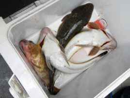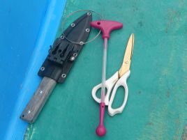 どれくらい魚信がなかったかというと最初に配られた5匹のエビを使いきってオカワリをもらったのが13時30分のこと。5匹のエビで魚を3匹釣っている。残りの2匹はアカクラゲにやられて弱ったのとフグに頭だけ残して齧られた。沖上がりの20分くらい前にもう1匹45センチくらいの一塁打級を釣り上げてタイムアップ。ご立派サイズはいないし、数も3匹だけなのでこれで満足してはいけないのだが、昨年3戦して釣ったマゴチの数を初戦にして超えたので、マゴチに対する苦手意識はちょっとくらいは払拭できた。お約束の神経絞めでマゴチをピクピクいわせてからお持ち帰り。