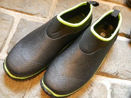 中国製のため初期不良のことがときどきあるという口コミ情報があったので、荷を解いてから不具合がないかをじっくり調べたが特に問題はなし。サイズは普段履いている物から1サイズ小さくともよいという声もあったが、足の幅が広く小さなサイズだと窮屈なことがあるので普段と同じサイズの物を購入した。素材は柔らかくつま先部分はすんなりと入る。かかとも靴のかかと部に付いている輪を引っ張ることで苦もなく履けた。くるぶしに履き口の伸縮部がフィットするので、すぐに浸水してしまいそうな隙間はない。