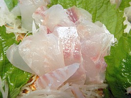 これまで釣ったことがあったヒメダイは20センチを少し超えるくらいまで。上品でクセのない白身の魚だなという印象は持ったが特別旨いとは思わなかった。今回釣れたヒメダイもイサキやホウボウよりはお刺身にて美味しいかなという程度の期待しかしてなかったのだが、30センチくらいのヒメダイはびっくりするくらい脂が乗っており、しかもその脂がほんのりと上品に甘く絶品だった。釣った翌日に食べたのでほどよい弾力の歯ごたえも残っていた。醤油をつけずにワサビを少しだけ乗せて食べるとちょうどよかった。イサキ、ホウボウと三種盛りにしたが、ヒメダイが群を抜く。カイワリ・カンパチ・ヒメダイの三種盛りがそれぞれ味の方向性も違い、宇佐美沖五目の理想の刺し盛りになった。カイワリが不調のときは少し深いポイントに移動して、ヒメダイ狙いができるとうれしいかも。