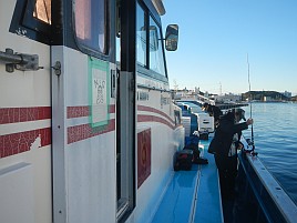 オニカサゴやアマダイ、アカムツなどをやりたいときに電車釣行組に優しい船宿がえいあん丸だ。三浦海岸駅に7時までにたどり着ければ送迎をしてもらえる。始発を利用して三浦海岸に6時半ごろ到着し、コンビニで買ったコーヒーをすすりながら送迎を待つ。大船長の運転で迎えに来ていただくが、送迎利用者はへた釣り1人で申し訳なさが少々。港に着くと若女将が元気に挨拶してくれる。利用するのは5度目だが、感じのいい船宿だなと毎回感じる。釣り座は予約時に指定でき、右舷4人の後ろから2番目。